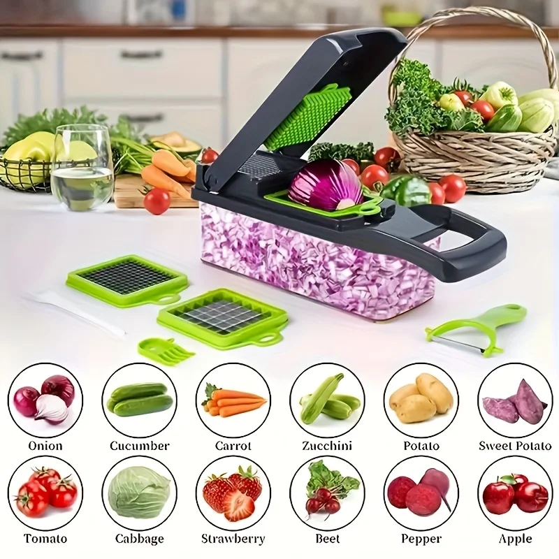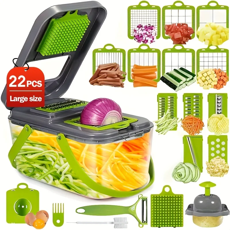 22-in-1 manual vegetable chopper with container multifunctional cheese grater potato slicer & fruit and vegetable cutter